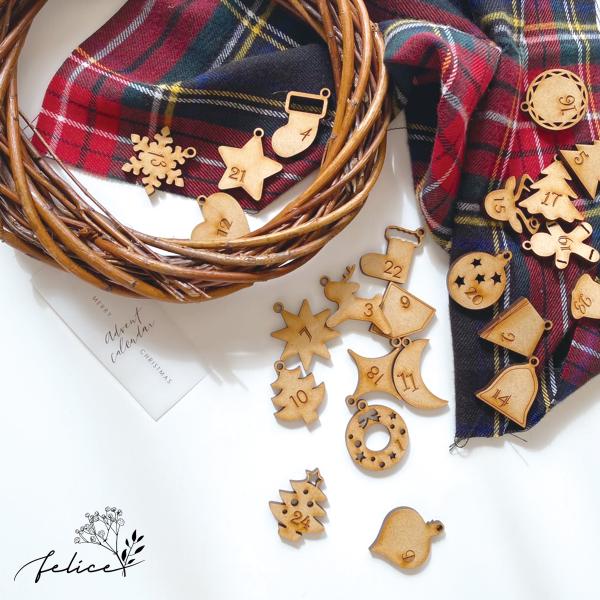 こちらの商品は、手作りの木製アドベントカレンダータグです。